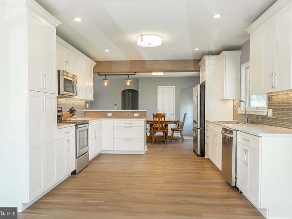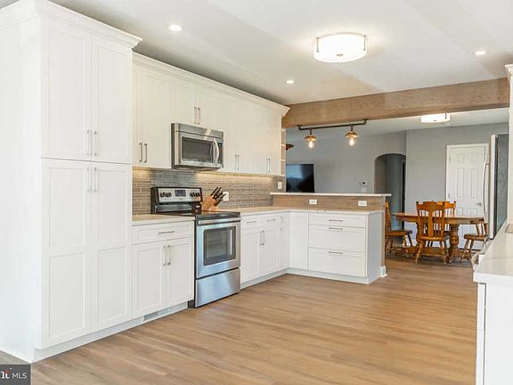 Completely remodeled ranch-style home is situated perfectly to enjoy views for miles over preserved farmland. Pinterest-worthy eat-in kitchen features stainless steel appliances, tile backsplash, two-tier breakfast bar, soft close cabinets, and custom light feature. Master bedroom features newly remodeled ensuite bathroom and walk-in closet. Finished basement with custom built bar offers the perfect entertaining space and walks out to your private backyard where you can enjoy views from the newly built deck or garden oasis. What I love about this house -- in backyard, nook with bench surrounded by garden, overlooking preserved farmland. Call Kate for a private showing! 908.399.2487