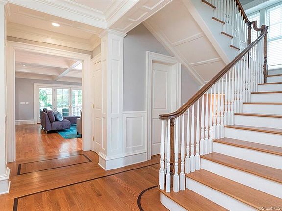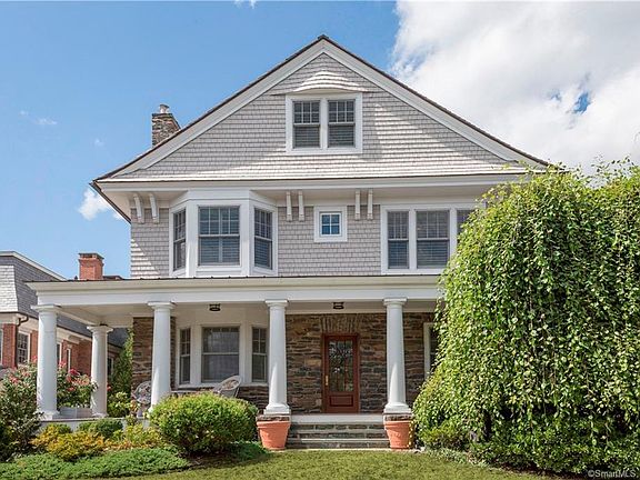 Central Greenwich luxury home with incredible setting on quiet street with large backyard two blocks from train and Greenwich Avenue. This outstanding 5 bedrooom home features 10 ft. ceilings, generous interior spaces, unparalleled panoramic vistas and private expansive backyard. The original stone facade was preserved in the recently built shingle style home. Built with high standards of quality and innovation in 2009 with 5,258 sq.ft. of living space on three levels plus a detached original stone structure. Highlights include; beautiful master suite w/mahogany deck, en-suite bedrooms, attached 2-car garage, and covered outdoor family room with grilling station with fireplace. The best of single family ownership in downtown Greenwich.