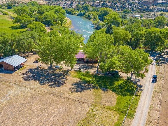 IMAGINE YOURSELF ENJOYING THE BEAUTY AND SERENITY OF NATURE right from your back deck. Located right at the RIVER'S BEND, this fabulous 4.53 acre HORSE PROPERTY comes complete with PIPE FENCED PASTURE, CORRALS, BARN AND 3 STORAGE SHEDS. ADJUDICATED WATER RIGHTS with gated irrigation provides ample water for the large, level pasture. The TASTEFUL COUNTRY HOME is complete with 3 bedrooms, 2 bathrooms, an updated kitchen, a large dining area with a gas fireplace and a Spacious Living Room with FABULOUS RIVER VIEWS from the large windows. The property has been perfectly maintained and manicured. Spend time on the BACK DECK OVERLOOKING THE RIVER abundant with deer and wild life. Enjoy the LARGE COVERED FRONT PATIO with a view of the pasture.