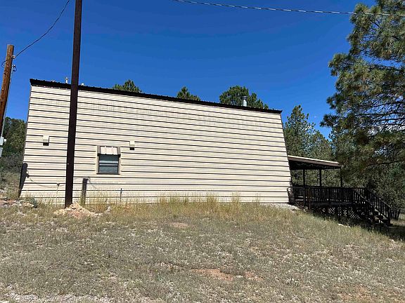 Welcome to Rocky Trail Retreat! This well-maintained modified A frame was fully renovated in 2012. This home has 3 bedrooms and 2 baths, large kitchen, on demand water heater. Carpet in the bedrooms and loft area, tile throughout rest of home. Woodburning stove in living room. The covered deck was enlarged to 450sqft and roof put on in 2015. In 2017 the decking was upgraded to Trex. Wood parts of the house were newly painted in 2023. A metal woodshed is located near the house. A 18 x 21 metal workshop with a concrete floor and a roll up door. The property is 5.75 acres that was thinned a few years ago. Approximately an acre was fenced off for a yard. Home will be sold furnished. Buyer can purchase ATV and riding lawn mower separately from home. Come and enjoy the wonderful NM weather & wildlife and the great views of Jessups Peak from your covered deck!!