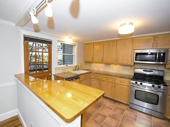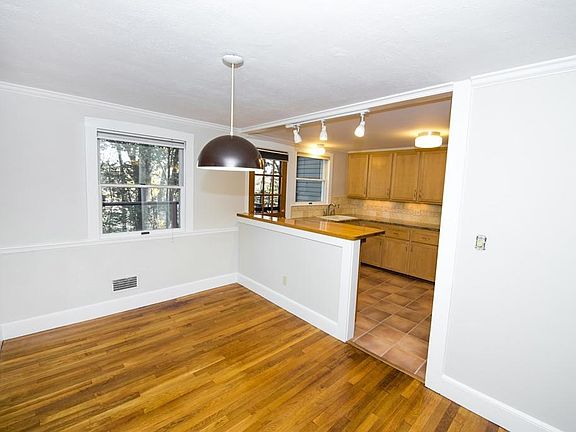 Adorably charming Cape in excellent Eliot Hill neighborhood. Many updates and renovations with potential to easily add more value. 1st floor has open concept kitchen, dining room & living room, as well as sun room, 2 bedrooms and bathroom. Hardwood floors just refinished and entire interior freshly painted. Kitchen was renovated in 2012 with granite countertops, under-cabinet lighting, and pull-out drawers in the cabinets. 2nd floor is phenomenal space awaiting your finishing touches to be utilized as a master suite: bathroom is there, walk-in closet needs shelving and a door, and the massive room with vaulted ceilings and skylight just needs carpet or hardwood floors to give it a warmer feel. Huge back deck. Tons of storage in basement and workshop. Gas heat with Nest thermostat (ductwork in place for central A/C). Commuters dream, close to green line, rt 9 & 95. Great entry-level home or down-sizing opportunity. Lower-level garage has barn doors and been used as a workshop recently.