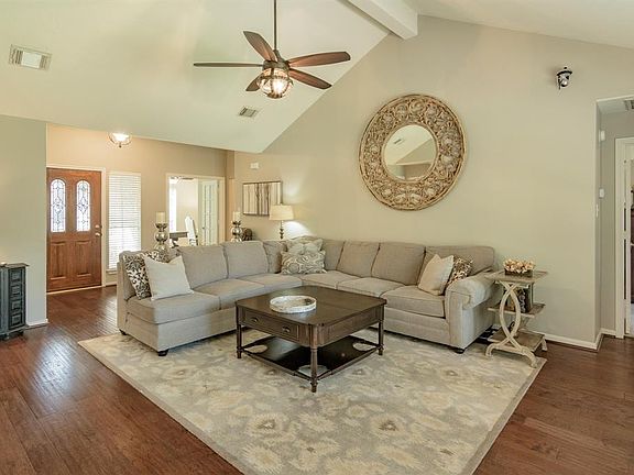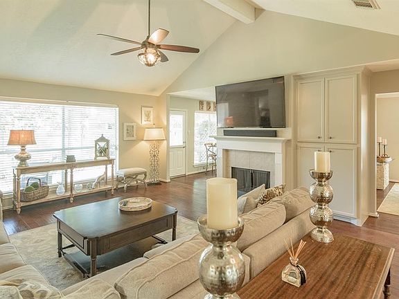 You will love this beautifully maintained light and bright 1 story home with room for everyone! Shows like a model with updates through out, study with double doors, formal dinning area, high ceilings, 2" blinds, extensive wood flooring and more. The large den has vaulted ceilings, fireplace, built ins with wall of windows overlook back. The eat in kitchen with stainless appliance, glass back splash, white cabinets and lots of storage just off the formal dining room. The split floor plan has a large private master suite to back of home with nice master bath offering separate shower and tub, walk in closets and updated fixtures. Gorgeous brick paved patio and pool size yard is a perfect entertaining space. Don't miss this beauty! You will not be disappointed and it will not last long. Great location, schools and shopping.