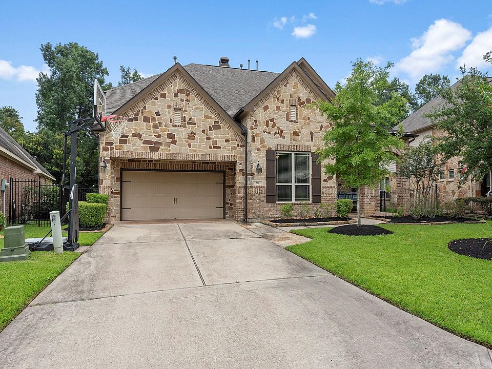 Nature in your backyard! This gorgeous 4 bedroom 3.5 bathroom home backs up to the George Mitchell Nature Preserve, making it feel like this backyard oasis is miles from the hustle and bustle of everyday life. This home features a fabulous layout with a two story grand entryway that leads into the spacious family room that converses beautifully with the open kitchen boasting an eat in island kitchen with quartz countertops and a walk in pantry. Enjoy those family holiday meals in the formal dining room. Relax by the pool on those hot summer days while entertaining your guests under the covered patio with your outdoor kitchen. Take family movie night to a new level with your very own media room. This home also features a 3 car tandem garage and is conveniently located near walking trails, parks, restaurants, and shops. Don't let this one get away!