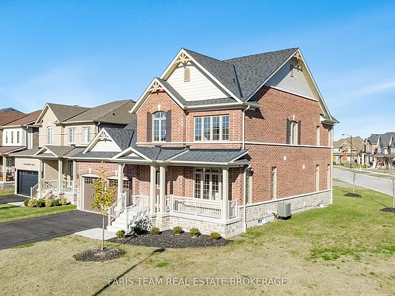 Top 5 Reasons You Will Love This Home: 1) Enjoy extra space and privacy on a large corner lot located on a peaceful circle with minimal traffic, perfect for families or anyone who values a quiet setting 2) The open layout seamlessly connects the kitchen, great room, dinette, and dining area, creating an ideal space for entertaining and everyday living, while the walkout leads directly to the backyard, extending your living space outdoors 3) Step into a grand entrance featuring with a stunning oak spiral staircase with iron pickets, setting the tone for the rest of the home, the main level boasts 9'ceilings and 8' doors, alongside a great room offering a coffered ceiling and a beautiful fireplace with an upgraded stone surround and a dining room showcasing a tray ceiling and a convenient server 4) Discover the convenient main level office that provides the ideal setup for working from home, while the upstairs delivers the spacious primary suite including dual closets and a luxurious ensuite with a walk-in glass shower, freestanding soaker tub, and polished 2'x2' tiles 5) Just minutes from all the amenities of Barrie's north end, while delivering a quiet, country feel, enjoy proximity to Vespra Hills Golf Club and Snow Valley Ski Resort, perfect for both summer and winter recreation. 2,572 above grade sq.ft. plus an unfinished basement. *Please note some images have been virtually staged to show the potential of the home.