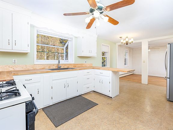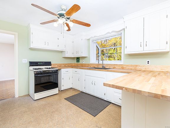 A GREAT PLACE TO CALL HOME! This ranch is set privately in a neighborhood of nice homes! OVERSIZED 2 CAR GARAGE for your toys, huge deck for enjoying the view of the gardens, METAL ROOF, vinyl siding, replacement windows, BUDERUS FURNACE, new hot water heater in 2020, newer 330 gallon oil tank and BRAND NEW BUTCHER BLOCK COUNTERS in the kitchen! Two nicely sized bedrooms, the current dining area could be walled in for another room, large living room with sliders to deck, full bathroom with tub/shower. Huge unfinished basement perfect for storage or future finishing! FENCED IN AREA for pets, kids, etc!