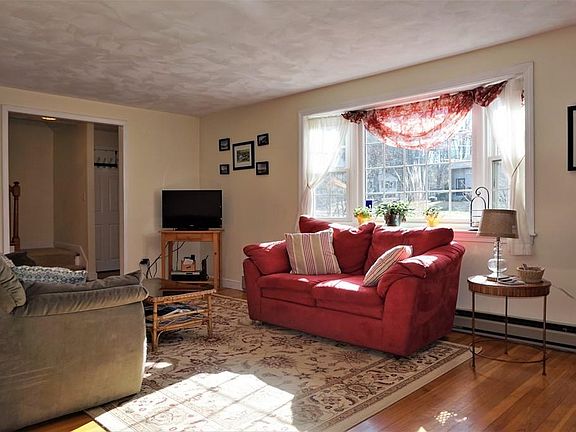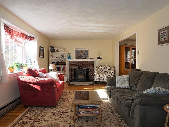 This 4 bedroom colonial sits on a private wooded lot less than a mile from Kennedy Elementary ; Backyard fenced in w/storage shed & lots of mature trees reaching back to deepest part of the lot ; The heart of this home is its spacious family room, w/canted bay window & wood burning stove; natural light pours into this space, keeping things sunny & bright all year long ; Wood burning stove is a perfect match w/the zone by zone control you have w/electric baseboard heat in each room ; Kitchen has eat-in space, along w/generous allotment of oak cabinet storage & updated appliances ; Separate DR connects to sliding doors leading to good-sized wood deck (recently stained) ; Hardwoods throughout most of the home; baths have tile ; 2nd floor has 4 generously sized bedrooms; each w/plenty of closet space & storage systems already installed ; Full bath upstairs updated as well ; Roof & windows replaced approx 10 yrs ago ; Unfinished bsmnt = room for expansion; 1 room already has heat installed