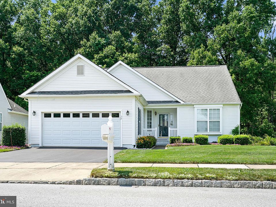 Explore this spacious home in the coveted 55-plus community of Springmill, Middletown, DE. Nestled on a large premium lot with a beautiful wooded backdrop, this 2-bedroom, 2-bathroom gem is a must-see. Step into the formal living and dining rooms, adorned with stunning hardwood floors and 9-foot ceilings. The inviting family room features a cozy gas fireplace, perfect for relaxing evenings. The master suite impresses with its cathedral ceilings, abundant natural light, and serene backyard views. The bright, eat-in kitchen offers ample counter space and room for a large dining table, ideal for gatherings. The basement is nearly fully finished, providing a spacious room and a versatile hobby area. Enjoy the low monthly HOA fee, which covers lawn maintenance and snow removal, as well as access to the clubhouse, community pool, tennis courts, bocce ball courts, and pickleball courts. Additional amenities include a fitness center and library, enhancing the vibrant lifestyle this community offers. Don't miss the opportunity to tour this stunning home and experience all that Springmill has to offer!