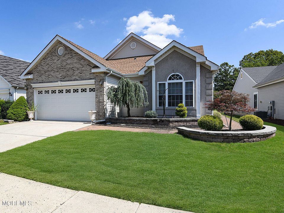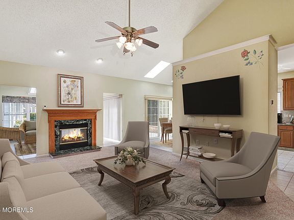 Located on a street with NO through traffic. Hosting gatherings or accommodating out-of-town guests? This floor plan caters to your evolving needs. 3 bedrooms, (2 conveniently located on the 1st floor, 1 on the 2nd floor), and three full bathrooms. The garage offers attic storage accessible via a full staircase. Volume ceiling in the family room, a see-through fireplace connecting to the sunroom, a study with a private patio entrance. The second level- a loft, an additional bedroom, and full bathroom with an overlook to the family room. This home is equipped with ceiling fans, central vacuum, solar panels, a newer whole house generator, newer HVAC systems, washer/dryer, laundry tub, security system, irrigation system, and a retractable awning, to the right catch a glimpse of the nearby pond. In the kitchen, you'll find a pantry, a complete appliance package with an insta hot water dispenser, disposal, a five-burner range with griddle, and a breakfast area. The primary suite is a 18X14.10, a tray ceiling, a spacious 9-foot walk-in closet, and a bathroom with soaring ceilings. Living in this vibrant 55+ community means enjoying an active lifestyle with access to an 18-hole golf course, a 35,000 sq ft clubhouse, indoor and outdoor pools, and more. Located near major routes, your new home offers convenient travel to NYC, Philadelphia, Princeton, the Jersey Shore, parks, golf courses, and horse parks. Embrace the amazing lifestyle awaiting you here!