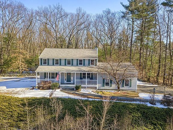 Beautiful move in ready center entrance colonial, Located in a great Dracut neighborhood. Property is very private with 2.76 acres and abuts conservation land. Home is heated with natural gas, has town sewer & water, the trifecta!! Come hang out on the peaceful front porch or quiet rear deck. Great level yard for the family and even has a small pond out front. Home offers hardwood through out, large kitchen with dining area w/ wood fireplace. Enjoy the front to back living room with lots of natural light. Home offers 4 Large bedrooms & more natural light & new ceiling fans. Master has full bath and walk in closet. Home has tons of storage & a HUGE garage w/ lots of potential. Basement is ready for all your ideas w/ newer furnace, AC condenser & hot water tank. This one shouldn't last long. Don't miss out!!