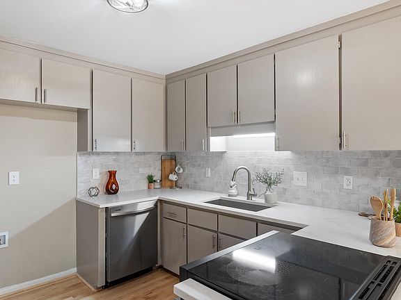 Refinished hardwood flooringPlush carpetTiled backsplashQuartz countertopsNew interior paintStainless steel appliances
