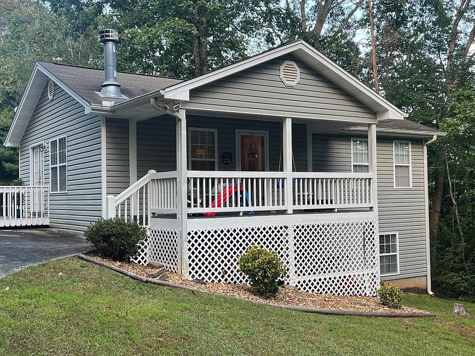 Introducing the perfect starter home you've been dreaming of! This stunning 3-bedroom, 2-bathroom gem has it all. The upgraded kitchen features granite countertops and stainless steel appliances less than 3 years old, ensuring both style and functionality. The living areas boast beautiful wood flooring, adding a touch of elegance to your everyday life. Stay cozy in the living room with a real fireplace, complete with gas logs for your convenience. The new HVAC system ensures comfort year-round. The main floor bathroom showcases new tile flooring and a tile shower for a spa-like retreat. The laundry room even has a stub out for a 1/2 bath, offering future potential. The full finished daylight basement delights with a large media/entertainment area and a kitchenette, perfect for hosting gatherings. An additional third bedroom on the terrace level ensures privacy and flexibility. Enjoy a covered front porch and open side deck, along with ample parking for 6 plus vehicles. The good-sized yard is ideal for kids and pets to play in. With its ideal location (about a mile from groceries and shopping) incredible features, this home is a must-see. Schedule your tour today and discover your future!