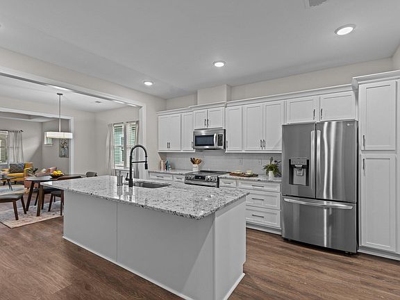 Welcome to Resort-style living at Clayton's premier Active Adult 55+ community! Lovely one-story open living space with zero entry. Spacious kitchen boasts a 9 ft center island bar, stainless steel appliances, 6-burner smooth-top range, tiled backsplash, tons of cabinet space and granite countertops. Upscale primary bathroom with double vanities, separate water closet, and tiled, zero-entry walk-in shower. Spacious laundry room directly off of the kitchen with natural light and storage shelving. Open floor plan with LVP flooring throughout the main living area, and generously sized (carpeted) bedrooms and closets. Covered front porch and large 17.5 ft X 8 Ft screened-in back porch. Cubby storage drop-zone conveniently stationed at the interior entry from the 2 car garage. HOA provides exterior lawn care, street lights, community pool, pickleball courts, yoga room, putting green, fitness center, community center, walking trails and more. Continuous city sidewalk leads you from the community to downtown Clayton, home to many proprietary restaurants, shopping and the post office. Move-in ready - 2 inch window blinds throughout and all appliances convey!
