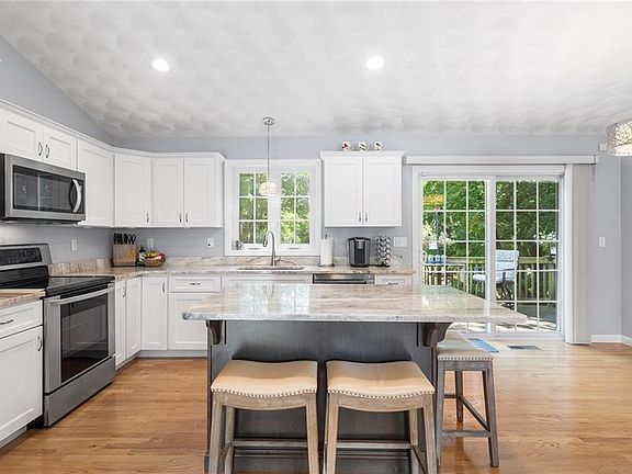Young Construction! This contemporary residence is a prime example of modern architecture and offers an impressive layout featuring three bedrooms and two and a half bathrooms. The lower level of the house has been meticulously finished, providing additional storage space conveniently located next to the garage. The kitchen is a showstopper, adorned with stunning quartz countertops that serve as a captivating centerpiece. The house is equipped with efficient propane heating and central air conditioning, ensuring optimal comfort throughout the year. Step outside onto the charming stone patio and take in the serene surroundings of the secluded backyard, which spans approximately 0.3 acres.