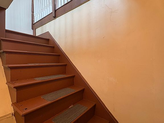 Hardwood and tile floors. Remodeled bathroom with tiled bathtub/shower. Spacious kitchen area w/ gas stove, fridge, and microwave. Private entrance in front leading to staircase. Parking included. Coin operated laundry in basement. Small pets negotiable.