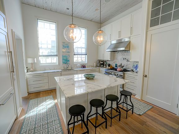 One of the most beautiful homes in Rosemary Beach, now available! Courtyard style home with marble, white-washed pecky cypress and white oak hardwood floors throughout. Corner lot allows entry from the Boardwalk into the Pool/Spa courtyard or through a massive front door from Town Hall Road. In the Main House, 1st floor has open Living/Dining/Kitchen with an alcove additional living room with fireplace. 2nd floor enjoys the large Master Suite with Bath, walk-in closet, laundry, and sitting room/office. A separate office provides an additional work space. 3rd floor features a lounge, laundry, and 2 Guest Bedrooms with ensuite baths. The Carriage House has all amenities with loft bedroom.