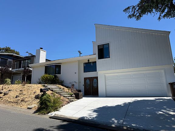 Located on top of a hill with sweeping views of San Francisco Bay, Mount Tam, Corte Madera Creek and rolling hills of Ross Valley in the coveted Kentfield School District. The contemporary, open floor plan and great light throughout the home create a warm and spacious feeling. Fireplace in living room. Newly remodeled kitchen and bathrooms. EV charger in the 2 car garage. New concrete driveway. Pets are most welcome.