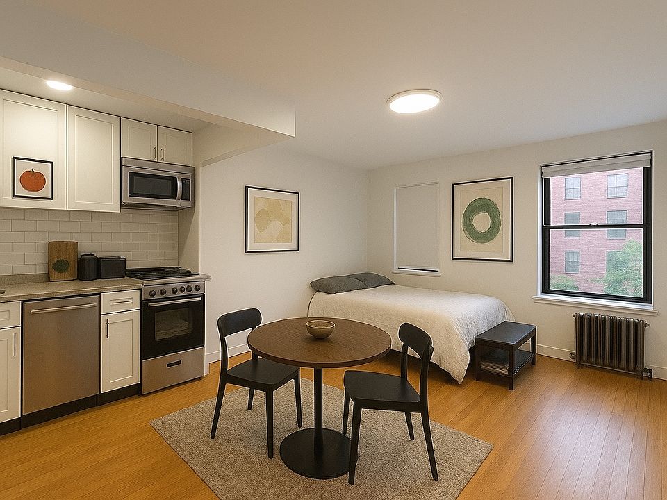 Beautiful shared landscaped courtyardRecently renovated studioWell-maintained building