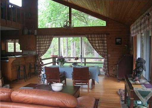 Custom Contemporary-Unique Open Floor Plan-Picturesque Wooded 5 acres-3 Open Garage Spaces-Lots of Glass Allowing Sunlight in Living Space-2Story Stone Fireplace-Wood Stove Not Remaining-Fully Applianced Kit-2 Beds,2 baths-subj to short sale approval