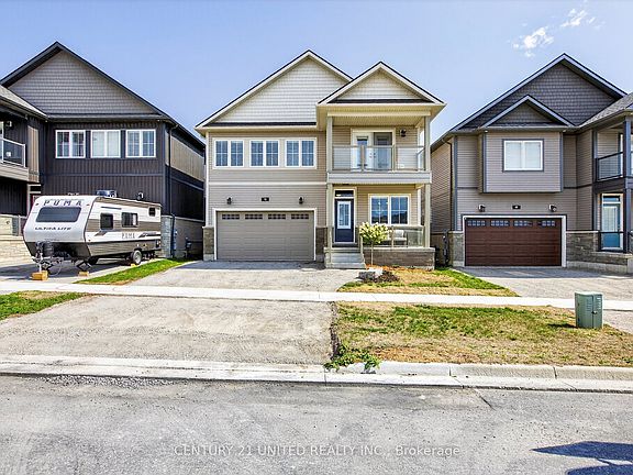 This stunning large 5-year-old Dietrich-built home in Peterborough's sought-after North End blends luxury and comfort. Featuring 4 bedrooms + office and 3.5 baths, it showcases soaring coffered ceilings, quartz waterfall island, heated bathroom floors, California shutters and a fully finished laundry. The primary suite is a retreat with custom walk-in, fireplace, and screened sunroom. Each bedroom has access to it's own en-suite or semi-ensuite. Basement is framed and ready with egress windows, rough-in bath, cold cellar and large windows to get creative and make your own. On the outside, enjoy epoxy-finished double garage, double wide driveway that will be paved at the end of the month with ample parking, fully fenced yard with deck, shed, and gas hookup.