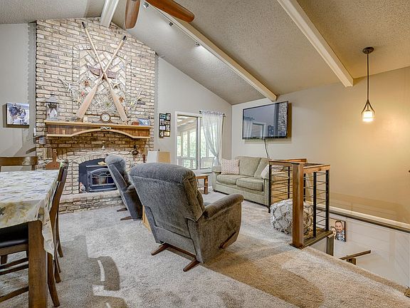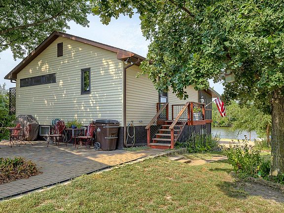 ESCAPE TO YOUR SERENE PARADISE! THIS CHARMING RANCH-STYLE HOME AWAITS YOU, OFFERING DELIGHTFUL RETREAT WITH TWO PELLET STOVES. THE MAIN FLOOR FEATURES AN INVITING FIREPLACE, AN OPEN FLOOR PLAN, AND A NEWLY REMODELED, BASEMENT HAS 3/4 BATH WITH STUNNING TILE. ENJOY YOUR MORNING COFFEE OR EVENING BEVERAGE ON THE SPACIOUS SCREENED-IN PORCH. THE WALKOUT BASEMENT PROVIDES FLEXIBILITY- YOU CAN USE IT AS A BEDROOM OR AN OFFICE, BOTH WITH PICTURESQUE LAKE VIEWS. STEP OUTSIDE TO THE COVERED PATIO AND THEN ONTO THE EXPANSIVE BEACH, PERFECT FOR ENTERTAINING AND BEACH VOLLEYBALL. A COVERED HAMMOCK INVITES YOU TO RELAX IN THE SHADE. THE BOATHOUSE, ACCESIBLE FROM BOTH THE FRONT AND BACK, ALLOWS YOU TO LAUNCH YOUR BOAT EFFORTLESSLY USING THE PRIVATE RAMP. EXPLORE THE BEAUTIFUL LANDSCAPE AND WALKING PATHS. PLUS, THERE'S AN IMPRESSIVE PATIO BETWEEN THE HOUSE AND THE TWO-CAR GARAGE, COMPLETE WITH A WORKSHOP AREA, HEATING, COOLING, WITH A WINDOW AIR CONDITIONER AND ADDITIONAL STORAGE. DON'T MISS THIS RARE GEM-CALL TODAY FOR APRIVATE TOUR!