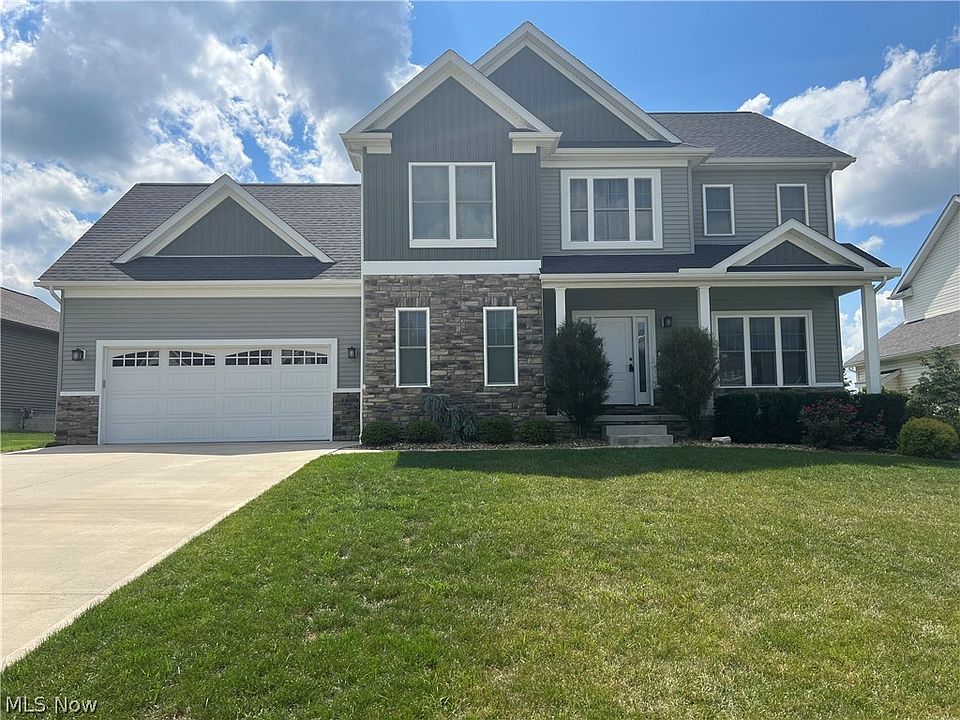 Welcome HOME to this immaculately kept Craftsmans Colonial! This one is located in one of Boardman Ohio's most desirable neighborhoods. As you enter in the neighborhood you will find sidewalks, street lights and mostly all the homes has been recently built! The difference with this one is it features an open floor plan with nine foot ceilings. The Great room has a custom stone gas fireplace. The open kitchen will be an amazing area for entertaining your family and friends! The kitchen is loaded with stainless appliances, back splash, and a center island with a breakfast bar. Plenty of natural lighting comes in from the pella windows or enjoy your privacy by pulling down the custom fitted blinds. The dinette has sliding glass doors that lead to a covered patio. In addition you have 1st floor laundry, tech room, office with French doors and Moen Faucets throughout the home. The Master bedroom suite includes plenty of closet space, recessed lighting, crown molding, and a huge master cera