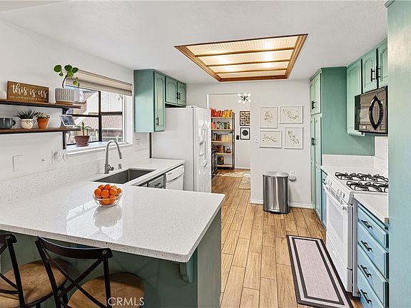 Welcome to a captivating blend of Mid Century Modern aesthetics and contemporary comfort in this meticulously upgraded end unit home located in the sought-after Heritage Village community. Step inside to discover a sanctuary of style, where every detail has been thoughtfully curated. The spacious living area boasts a timeless ambiance, accented by upgraded flooring and recessed lighting, creating an inviting atmosphere for relaxation or entertaining. The heart of the home, the kitchen, received a stunning makeover in 2020, featuring modern upgrades that complement the home's stylish vibe. With its sleek countertops and ample storage space. With two spacious bedrooms and one-and-a-half bathrooms, providing comfortable accommodations for residents and guests alike. Retreat to the oversized patio/backyard, perfect for outdoor gatherings or simply enjoying the serene surroundings. Convenient two-car garage offering direct access to the unit, providing ease of parking and additional storage space. Plus, the front patio offers a charming spot to enjoy your morning coffee or evening relaxation. Resort-style living with Heritage Village's array of amenities, including two pools, a spa, clubhouse, playground, and more – all covered by the HOA dues. Additionally, the HOA covers outside maintenance, water/trash, high-speed internet, cable, and earthquake insurance, ensuring peace of mind and worry-free living. Located in a well-maintained community, Heritage Village offers the perfect blend of tranquility and convenience. Don't miss the opportunity to make this stunning Mid Century Modern-inspired home yours – schedule a showing today!