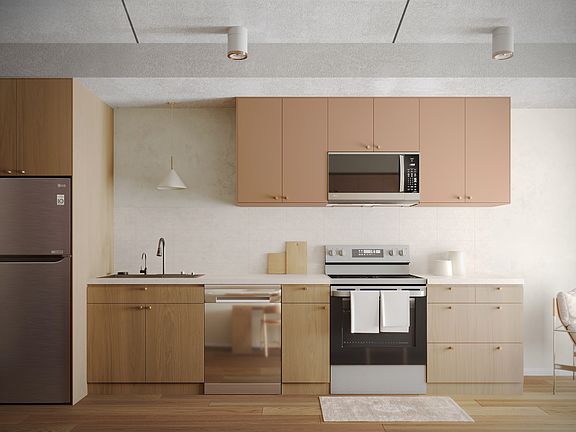 580 Coldstream offers 1+ Den and 2 Bed apartments that have been tastefully designed with a warm palette to create a cozy and inviting space for living in. Features include quartz countertops, stainless steel LG and Samsung appliances, beautiful custom vinyl plank flooring, and ample cupboard space accented with gold finishes. Hidden in the gorgeous cabinetry, you'll find your in-suite washer/dryer.