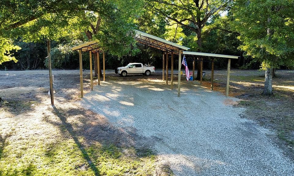 Nearly one-acre corner lot nestled among age-old, majestic oak trees in the desirable X flood zone (not a flood zone). This picturesque property is equipped with a new well pump, power pole, and existing septic system, ready for your RV, manufactured or site built home, making it the perfect spot for your primary home or weekend retreat. The 24x36 pole barn with 12x24 lean-to provides excellent RV coverage and boat storage. Enjoy the natural shade of the oaks while being conveniently located near three freshwater boat landings and just a 30-minute drive to area beaches. A perfect blend of serene rural charm and coastal accessibility—your ideal homestead or weekend escape awaits!