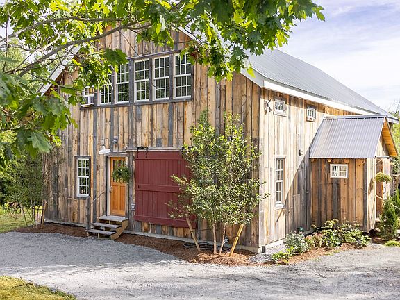 Tucked away in a tranquil setting, this newly constructed 3-bedroom, 2-bath barn-style residence is a masterful fusion of heritage & refined elegance, situated on 5.4 pristine acres. Absorb the beauty of reclaimed exposed overhead beams, while expansive floor-to ceiling custom-crafted windows capture mountain vistas & bathe interiors in golden natural light. Large sliding doors open to the melody of a gentle brook & surrounding woods, creating a sense of calm. Step into an expansive open floor concept, with dramatic ceilings that amplify the home’s sense of scale. The Shaker style inspired chef’s kitchen is well equipped with new Unique brand appliances, salvaged soap stone sink, open cabinetry & a custom breakfast bar. The dining room is furnished with a refurbished-custom dining table, creating the feel of farm fine dining. The primary suite is a true sanctuary, featuring a spa-inspired ensuite bath with striking VT green slate walk-in shower, clawfoot bathtub, artisan sink, & curated furnishings that exude warmth & sophistication. Accompanied by a loft that serves as a bonus room or office, the 2nd level adds a spacious dimension to the home. Two additional bedrooms offer generous space for family or guests, with views of the surrounding woods & mountains. A luxurious bathroom features a vintage sink & a free-standing tub. Every space is thoughtfully designed to offer a lifestyle where nature’s beauty and exquisite-yet rustic craftsmanship meet. Owner is licensed realtor.