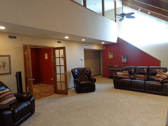Beautiful Country home with HUGE workshop! Family room has vaulted ceilings and french doors. Master bedroom could be up or down. Other house features include gas-filled, energy efficient windows; new carpets & floors; and recently added laundry room. All this on 6 private acres with fruit trees.
