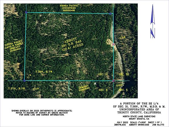 120 Mountain Acreage @ Upper Trinity River. Priced to sell and the seller is motivated. Deeded by Grover Cleveland in 1896; in current owner's family since 1935. From mountain-top vistas to level portions along the Upper Trinity River. Just 1 residence before the end of the road. The current owner's ' Uncle Paul' would drive up from Pasadena in his Model A, for vacations to savor Trinity Alps and River splendor. After 87 years of cherished Trinity memories, it's time to pass on the opportunity to cherish & savor this rare, 120-acre, jewel. A selected timber harvest in 2004. The owner states that 'Forester Holub' cut in a few potential building sites as they cleared for helicopter landings in 2004. The Chinquapin Gulch meanders through, as it reaches the Upper Trinity River. Water, Septic, and power will need development. Outdoor recreation & rejuvenation many long for. Located just off paved Highway 3 North, A recently completed a full survey ( included in photos ). Buyers(s) are encouraged to do their own diligent discovery of all aspects of this parcel. Some photos posted are from previous years, Seller is not able to carry any financing.