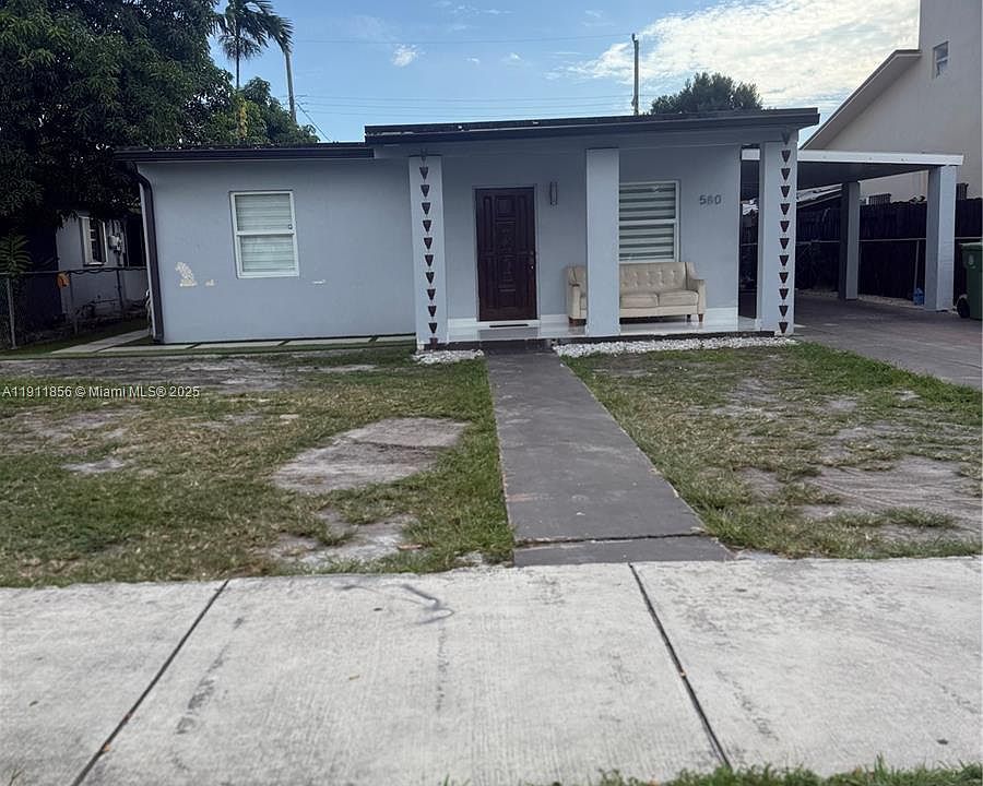 Great investment property of family home!Property Sold AS IS.The main house consist on a 3/2 and has an additional separate 1/1 with its own private entrance.Hurricane shutters throughout the entire property along with impact windows and an impact sliding glass door..Three car carport with one city parking space in front of the house.