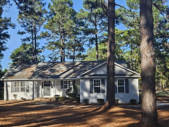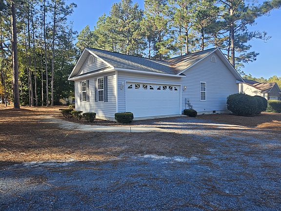Single Level home with a Cathedral Ceiling gives this Cozy Home a Large Feel! Inside you will find a well-planned kitchen with a breakfast / entertainment bar, newer appliances, and a split bedroom floor plan and 2 Full Baths! This home is Freshly Painted, Clean and Move In Ready! The 2 Car Garage has a side entry from the circle drive. Situated on a Large Flat Lot with Low Traffic. The yard is quiet with Low Maintenance. Enjoy the many parks and green spaces Pinebluff has to offer! Yet, it is so close to all Moore County amenities, schools, churches, golf, shopping and area restaurants! CALL for appointment to view!