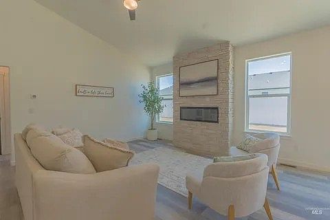 This stunning brand-new construction residence features a modern open-concept floor plan perfect for comfortable living. Boasting 3 spacious bedrooms, 2 full bathrooms, and a 2-car garage, this home is designed with both style and functionality in mind. Step into a light-filled living area where you'll find a cozy fireplace. The kitchen is a chef's delight, featuring sleek granite countertops, contemporary cabinetry, and ample workspace for preparing meals. Enjoy a fully fenced backyard ideal for kids, or weekend barbecues. The property is also fully landscaped, offering instant curb appeal with minimal upkeep. No pets/No Smoking Allowed! Owners are purchasing and will be closing around August 25th. $2050/month and tenant pay all utilities and would maintain the lawn. Please contact Stephanie with Riddle Properties for more information or to schedule a showing.