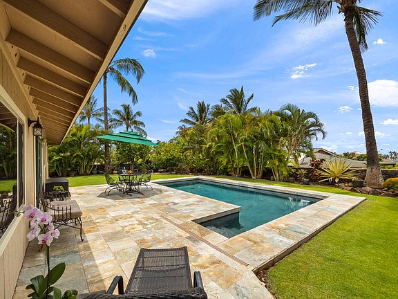 Experience the epitome of modern island living at this stunning 3-bedroom, 2-bathroom home at 580 Kaiola Street, Kihei, HI. Spanning 1,384 square feet of living space on a 7,676 square foot lot, this property offers a perfect blend of luxury and tranquility, complete with breathtaking ocean views. Step inside to discover an open floor plan that seamlessly connects the living, dining, and kitchen areas, creating an ideal environment for relaxation and entertainment. The space is bathed in natural light, enhanced by solar tubes, especially during full moon phases. Tile floors with exquisite detailing at each doorway and custom insets in each shower add touches of elegance throughout. A high-efficiency split system air conditioning ensures comfort in every room. The chef’s kitchen boasts custom Diamond cabinets, granite countertops, and high-end appliances. Outside, the in-ground 12 x 26 saltwater pool and beautifully landscaped backyard form a private oasis perfect for moonlight swims and stargazing, while the secluded “hide” garden offers a variety of nearly year-round fruits. Located above potential flood zones, this home ensures safety with its proximity to the beach. Its location provides privacy in the backyard and easy access to shopping, restaurants, services, and recreation while away from central Kihei's more visitor-heavy streets. The property’s strategic position allows for quick and easy access to other towns, with multiple ingress and egress routes ensuring mobility even if some roads are closed. Nature enthusiasts will appreciate the proximity to the Kalepolepo fishpond, the Hawaiian Islands Humpback Whale National Marine Sanctuary, and the walking beach of Mai Poina. Maalaea Bay, nearby, offers excellent whale-watching opportunities from December to March. Don’t miss this opportunity to own a mini resort-style home with a National Wildlife Federation-accredited backyard sanctuary. Embrace the essence of island living in this extraordinary property, designed for ultimate relaxation and privacy.