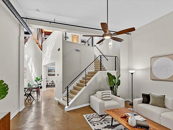 Lucky You! Rarely available Loft Unit in the Mariani Square development of Japantown. Built inside of the historic Mariani Cannery building with brick walls and roofline elements retained, this Loft offers an Industrial SOHO-chic vibe with soaring ceilings, exposed beams and large windows. Truly unique, you must come see this for yourself. Upstairs is the loft bedroom, with a walk-in closet and dual sinks in the bath. Downstairs, the open, flexible floor plan offers: a spacious living room with soaring ceiling, brick wall, large window with greenbelt view and plenty of room for large furnishings & artwork. The bright kitchen features stainless appliances, island, pantry and actress to full size laundry. Adjacent dining area and ample room that could be guest room-office-exercise area-TV-gaming-dining room - You decide! The spacious front porch was once a loading dock but is now a spacious shady respite that overlooks the greenbelt under a leafy canopy. Other amenities include soaring ceilings(!), heat pump and cooling, skylight, large windows, 2 large storage closets, ceiling fans. Super convenient location within the Japantown area. Dog friendly. If you want to live in an architectural delight with unique style, this is the home for you!
