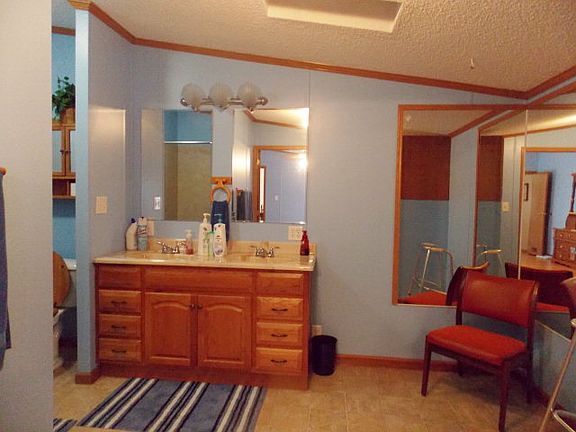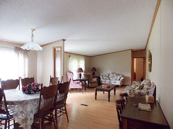 Home is situated on almost 2 acres with garage. Double-wide has two water heaters and is on permanent foundation. Garage has an apartment above which features 2 bedrooms, 1 bath and 1/2 bath down below. Approx. 960 sq. ft. There's a 40 ft. trailer for storage.