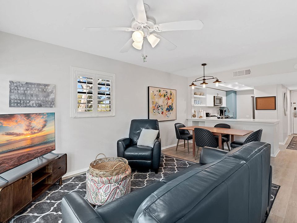 Welcome to your second-floor vacation rental condo located in building "H" at Park Shore Resort in Naples, FL. Nestled in a 13-acre subtropical oasis, this condo offers a serene escape close to downtown and just a short drive from 9 miles of beautiful beaches. Enjoy on-site amenities such as a heated pool, a restaurant with a full bar, a BBQ deck with a gazebo, and tennis and pickleball courts. This condo offers a King bed, two Twin beds, and a pull-out sofa, along with two full-sized bathrooms. Enjoy casual indoor dining for four or outdoor meals on the lanai or at the grilling gazebo. The main bedroom includes a desk and chair for staying connected, and a full-sized washer and dryer are conveniently located in the kitchen. Parking is available on the ground floor, and a common elevator provides easy access to the second floor. The condo offers parking on the ground floor just outside the building. Centrally located yet secluded on lush, private grounds, Park Shore Resort is the ideal Naples vacation spot. The resort is walkable to local shopping, dining, and grocery stores, and just a 12-minute drive to downtown Naples. Nearby attractions include Horizon Way Beach, Seagate/North Gulfshore Beach, Venetian Village, Waterside Shops, and The Mercato. The community is undergoing a window replacement project from May 15th to August 15th, 2025, which may cause some construction noise and dust. Each unit will take two days to complete and will not be available for booking during the replacement. The condo has a maximum occupancy of four guests, which is strictly enforced. A staff member is available at the front desk from 7 am until 11 pm, with a 24/7 call center for additional support.