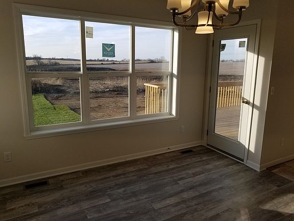 New construction home in Clinton WI. 1853 sq. ft. open concept plan. Split bedroom great room ranch home. Large dining area in kitchen with pantry closet and island with breakfast bar with granite countertop, includes stainless range, dishwasher and microwave. Cathedral ceilings in great room, primary bedroom with double closets and private bath. Separate laundry room with drop zone at garage entrance, full basement with partial exposure, 90% furnace, blacktop drive. Agent Owned