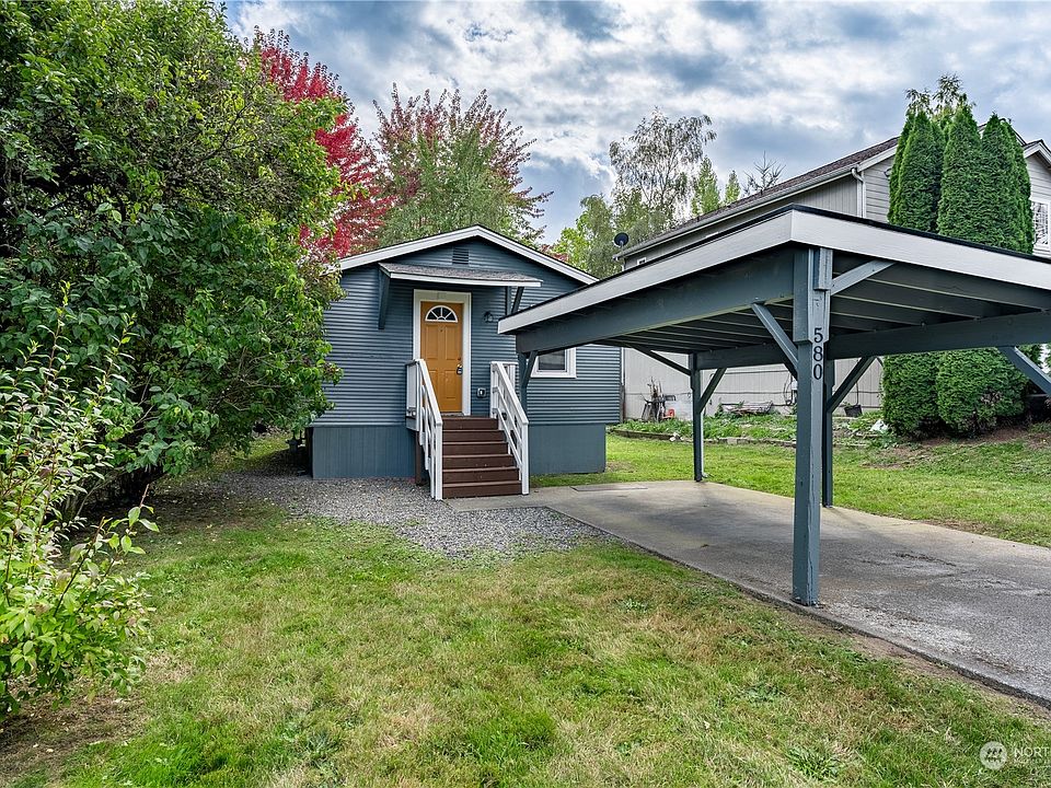 Spic and span immaculate! Rare opportunity to own a charming 1-bedroom, 1-bath cozy cottage in the heart of Port Orchard, right by Givens Park. Homes in this price range and in such great condition are hard to find. This move-in-ready gem features fresh interior and exterior paint, brand new carpet, and updated vinyl flooring throughout and a carport for covered parking. Enter to a large living area with a free standing gas heater and lots of windows for natural light. Nestled in a peaceful location, it’s perfect for first-time homebuyers, downsizers, or investors looking to add to their rental portfolio. Don’t miss out on this chance to own a stick-built home at such an affordable price point.