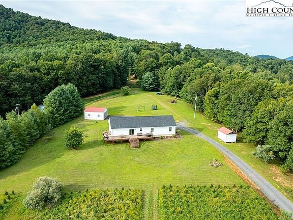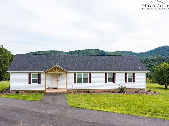 Now Offered With 6 Acres instead of 3 Acres, and now being offered mostly furnished. Recent Survey. Experience spacious one-level living in this like-new 4BR, 2BA home, less than 5 years old. The open floor plan features a large living room that flows seamlessly into the kitchen and dining area, with luxury vinyl plank flooring throughout the living areas and cozy carpet in the bedrooms. The primary bedroom boasts an en suite bath and is privately located on the opposite side from the guest bedrooms in a split-bedroom design. Additional highlights include a full laundry room, a walk-in pantry, and a 10 ft wide deck perfect for enjoying the beautiful mountain views. The expansive yard is ideal for kids or pets, and with no restrictions, the possibilities are endless. Seller will need to lease back the Christmas Tree land for 4 years and will pay $1000 per year. A detached 2-car garage adds convenience, and the property is just 25 minutes from Boone and 10 minutes from downtown West Jefferson. Don’t miss this opportunity to see it today