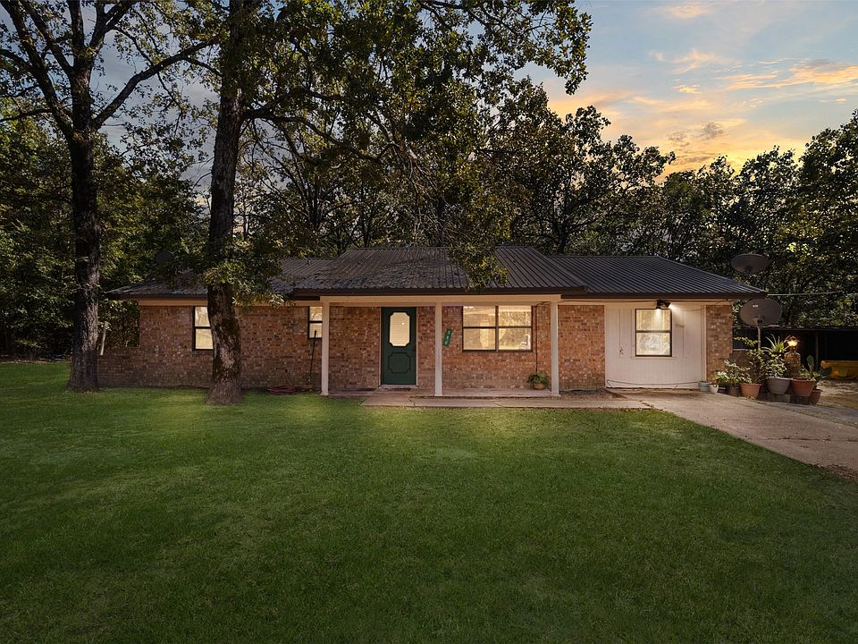 Exclusive offer!! Are you looking for a quiet place for you and your family? This beautiful house located on a County Road between Grand Saline and Fruitvale with approximately 3.59 acres of trees!!! 26X 24 garage or you can used it as a shop!! This super cute brick home & metal roof has sunroom with outside entry door added on the back that overlooks pretty wooded area, 3 Bedrooms 1 Bath & large utility laundry room,big eat kitchen with countertop and title backsplash.Schedule your showing today!!