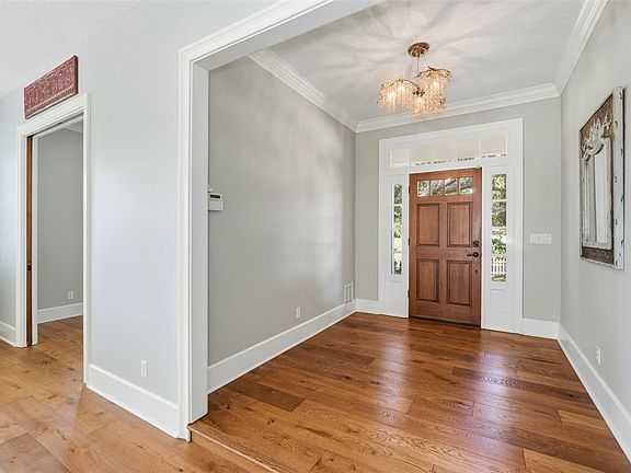 Large center islandManicured backyardLarge covered porchMature oak treesBeautiful enormous windowsFrench doorsWhite picket fence
