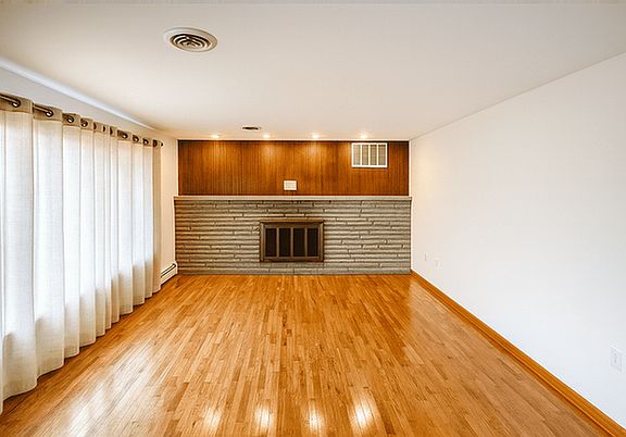 Beautiful 4-bedroom, 2-bath ranch-style home offering over 2,038 sq. ft. of living space. This spacious residence features a family room, dining area, hardwood floors, ceiling fans, washer and dryer, range, garbage disposal, and a private patio with an open yard. The first bathroom includes original cabinets and a refurbished tub with restored glass doors, complemented by new flooring, toilet, and updated tiles. The kitchen maintains its charming original cabinets while featuring new flooring and a brand-new oven. A two-car garage provides ample parking and storage. Tenant is responsible for all utilities, lawn care, and snow removal. Pets are welcome with an additional pet fee.