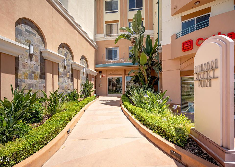 Live the Main Street Alhambra Lifestyle, with so much at your doorstep, in this Light, Bright, and Clean 1,162 SF single level Condo featuring a massive 400SF terrace with sweeping views across the valley to the San Gabriel Mountains. Built in 2004, it features a large open living area with a niche that could be used as a work-from-home space, granite kitchen with refrigerator and microwave, and a laundry closet with washer/dryer included. The bedrooms, each with direct access to the terrace, are accessed separately from each other to provide privacy and quiet. The main bathroom has a jetted tub and double sinks as well as a separate stall shower. Hardwood floors, dual double paned windows and recessed lighting help create the modern, quiet and comfortable feeling of the unit. There are 2 side-by-side assigned parking spaces in the secured, covered parking garage, and there are no stairs from the parking to the interior of the unit. Community amenities include a spacious courtyard, a tennis court and a clubhouse that can be reserved for special occasions. The ground floor of the building features the highly rated Lunasia Dim Sum House restaurant, a bank and a UPS store, as well as other food options. Dozens of other shopping and popular dining options are adjacent to the building, as well as Costco, Sprouts Market, Alhambra High School and religious institutions within just a few blocks. It's ready for Immediate Move-In upon approval and lease signing!