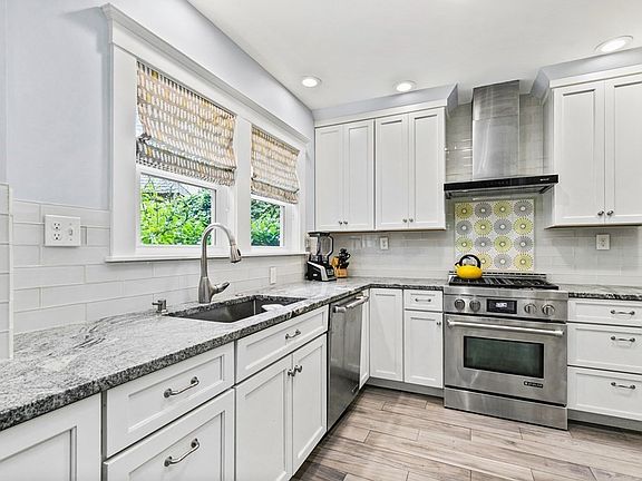 Located just a few blocks in from Washington Square is this stunning condo. Take the stairs up to your private entrance and step into an open floor plan. Features include a beautiful living room that leads to the dining room with built in china cabinet. The stunning was renovated in 2016 & features stone countertops, recessed lighting, stainless steel appliances & peninsula with seating for 4. There is a bedroom with an ensuite, full bath. There are two additional bedrooms & a renovated bathroom with double sinks, stone countertops, marble flooring & glass enclosed tub (2016). Hardwood flooring throughout, high ceilings, newer windows (2016) & Garage parking. Roof: 2021, Heating: 2017. Spacious deck in the front and smaller deck in the back. Laundry in the lower level, tons of storage, self managed association. Ideal location just blocks from Griggs park, Washington Square, Coolidge Corner, Brookline Village, the Green Line T, Longwood Medical & more!
