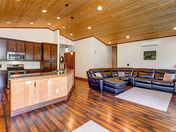 Beautiful custom craftsman home on secluded 2-acre parcel. 3 bedrooms, master bath w/ walk in shower, 2 full baths, office. kitchen with SS appliances, granite counter, living room w/vaulted knotty pine ceilings, floor to ceiling rock fireplace w/mantle, expansive windows looking out to back yard abundant w/ wildlife, exterior cultured stone, and large private deck great for entertaining w/ BBQ hook-up and outdoor speakers. Two car garage w/dog washing station/shower in the mudroom.