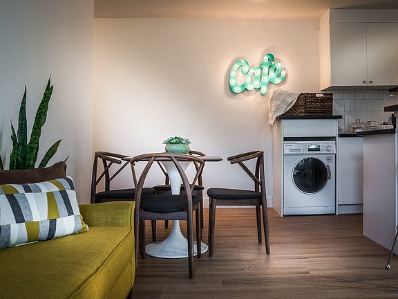 Custom cabinetryNewly renovated studiosHardwood-style flooring