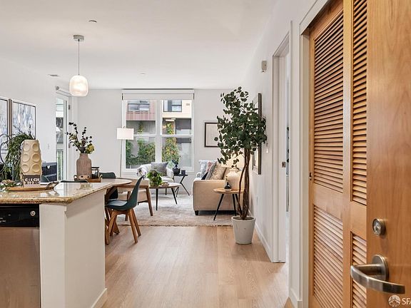 Discover modern comfort in this stylish 2-bedroom, 2-bath condominium at 5800 3rd Street. This bright, southwest-facing home offers an open layout with soaring ceilings, updated Pergo flooring, and floor-to-ceiling windows that flood the space with natural light. The kitchen is thoughtfully designed with granite countertops, stainless steel appliances, and generous cabinetry, opening seamlessly into a spacious living and dining area. Both bedrooms are generously sized, with the primary suite featuring a walk-in closet and en-suite bath, while the private balcony offers an inviting space to enjoy morning coffee or evening sunsets. Additional highlights include, an office den, in-unit laundry, secured parking with EV chargers, and building amenities with elevator access to all floors. Ideally located near the T-Line, 101 freeway, and neighborhood cafes, this residence combines style, convenience, and easy access to both downtown San Francisco and the South Bay. An excellent choice for modern city living.