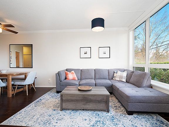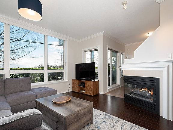 Welcome to The Villas at Southcove. This incredibly well maintained, bright and spacious home with 9' ceilings comes with an oversized 'den' that can easily be furnished as a second bedroom. Additionally, this floorplan comfortably provides enough space for a dining room and an office area. Nearly all the appliances have been updated since 2021 (fridge/dishwasher/washer/dryer) as well as the toilets and ceiling fans. The building is well managed and well maintained. New roof in 2022. Elevator modernization underway. 1 parking. Storage lockers available for rent through the Strata. 1 dog & 1 cat or 2 cats allowed.